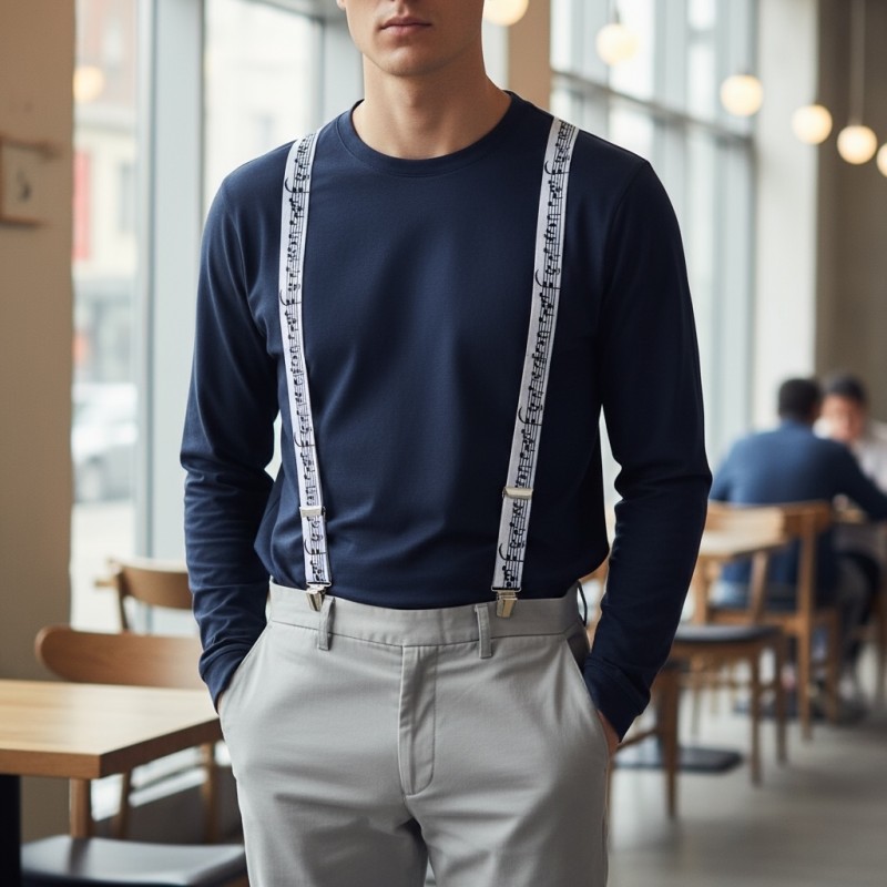 Ces bretelles à motif partitions de musique sont le choix parfait pour ceux qui souhaitent exprimer leur amour pour la musique à travers leur style vestimentaire. Elles apportent une touche unique et originale à n’importe quelle tenue, que ce soit pour un look formel ou casual. Portez-les avec une chemise pour un style chic ou associez-les à un jean pour une allure plus décontractée et artistique.