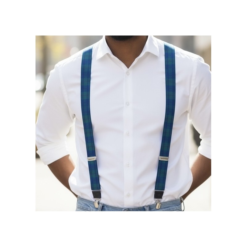 Paire de bretelles fantaisie à pinces pour homme, modèle intissé ecossais vert bouteille