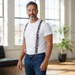 Paire de bretelles fantaisie à pinces pour homme, modèle carré noir