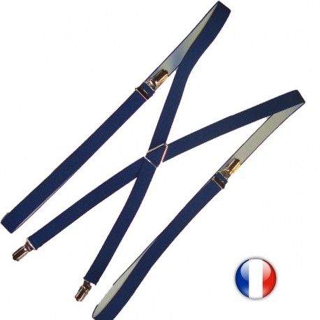 Jolie paire de fines bretelles à pinces unies marine.